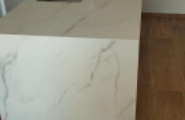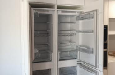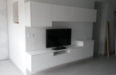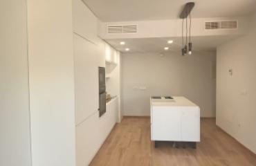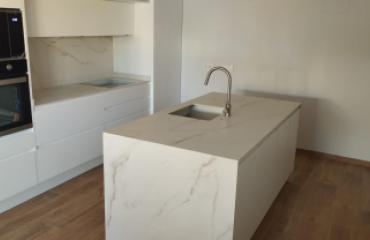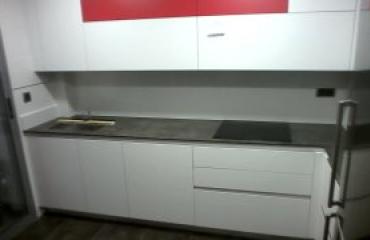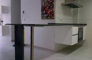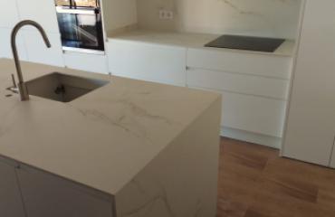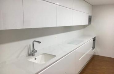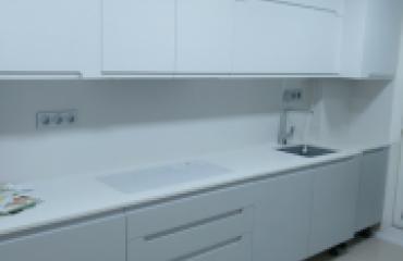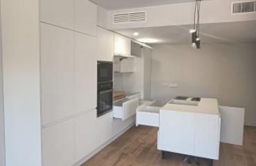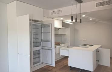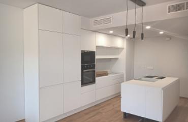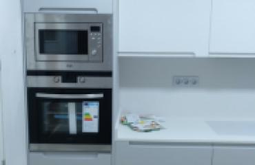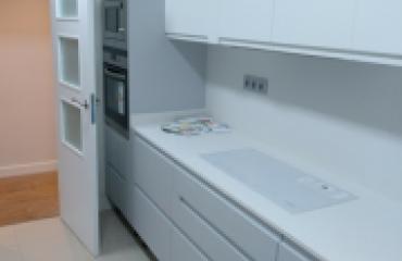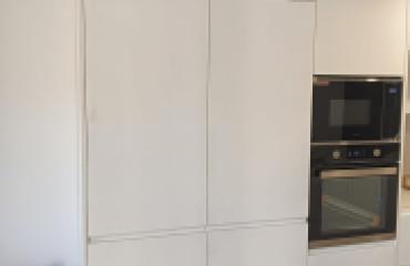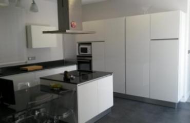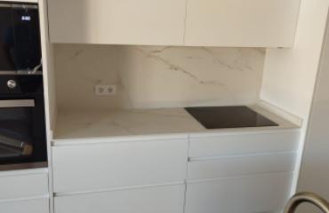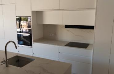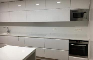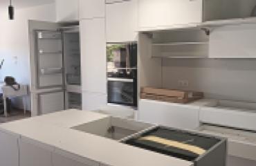 - Cocina modelo Complet Luxe, color blanco brillo, sin tirador, módulos en blanco, y herrajes Blum.